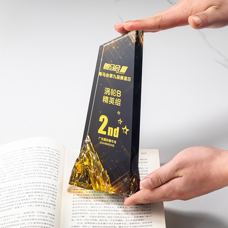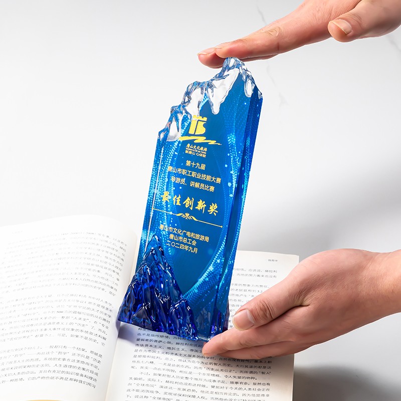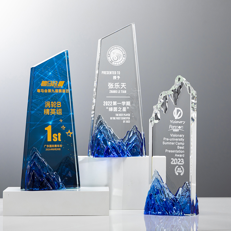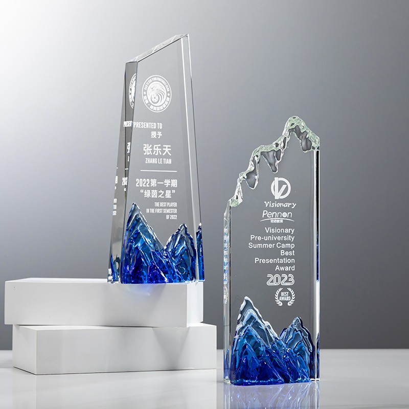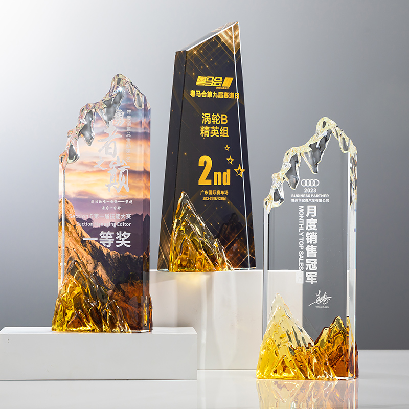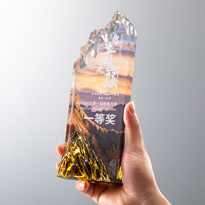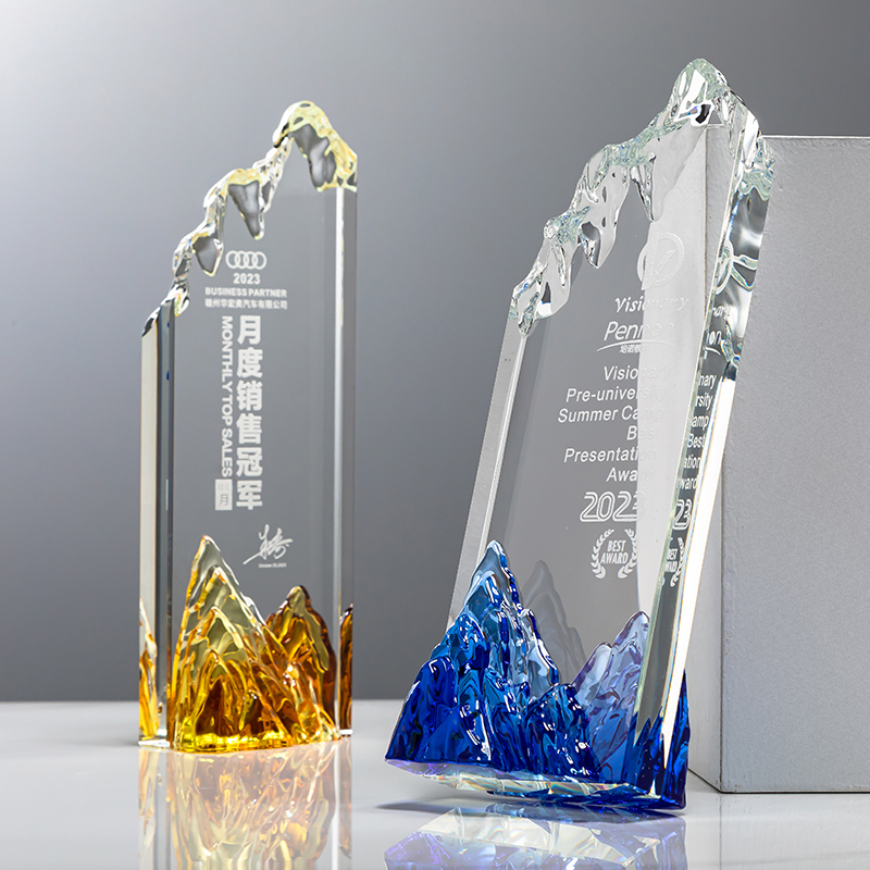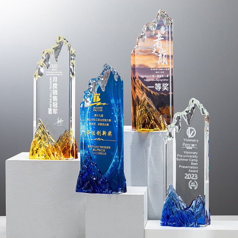 New Design High Quality Creative Color Printing Award Crystal Glass Trophy Business Gift Plaque Mountain Peak Design