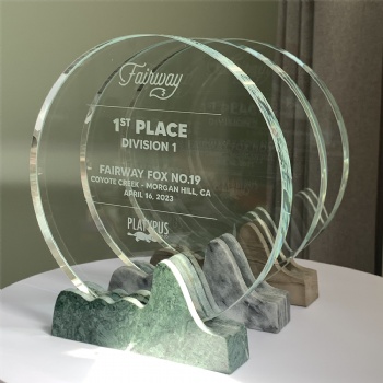 ADL Wholesale Retail Glass Trophy Glass Awards Blank Customized Words and Logo for Company Events