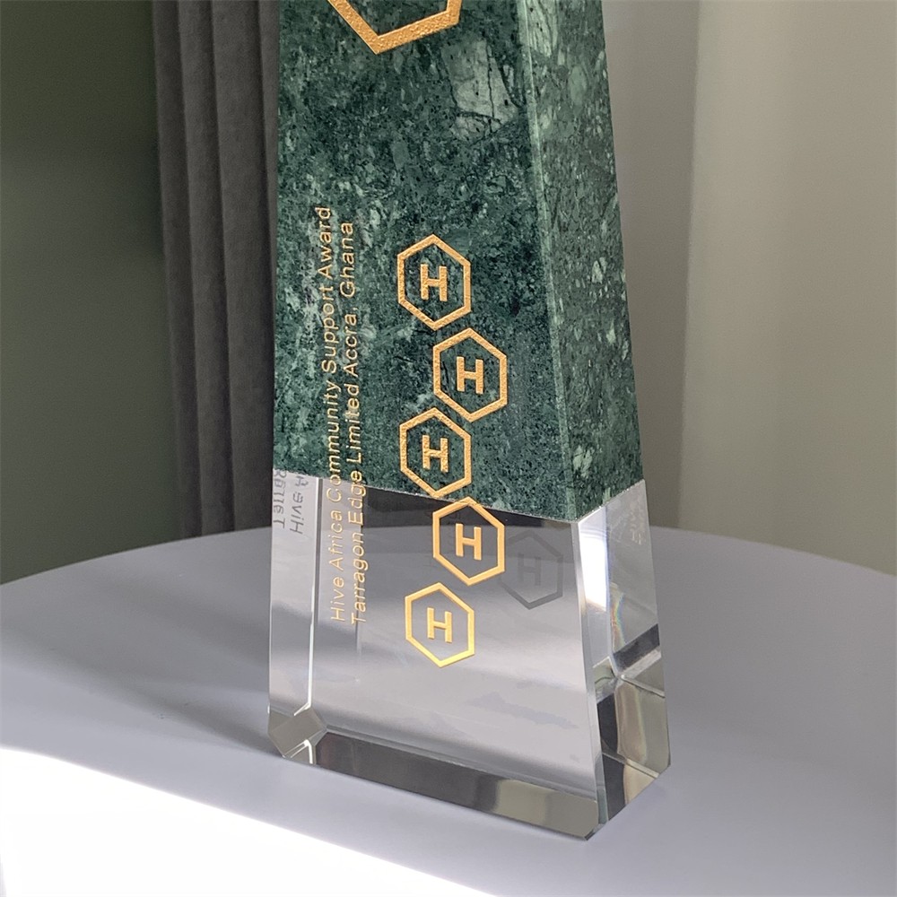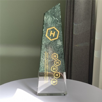 ADL Crystal Glass Trophy with Green Stone Base with Customized Logo or Words for Souvenir Gifts