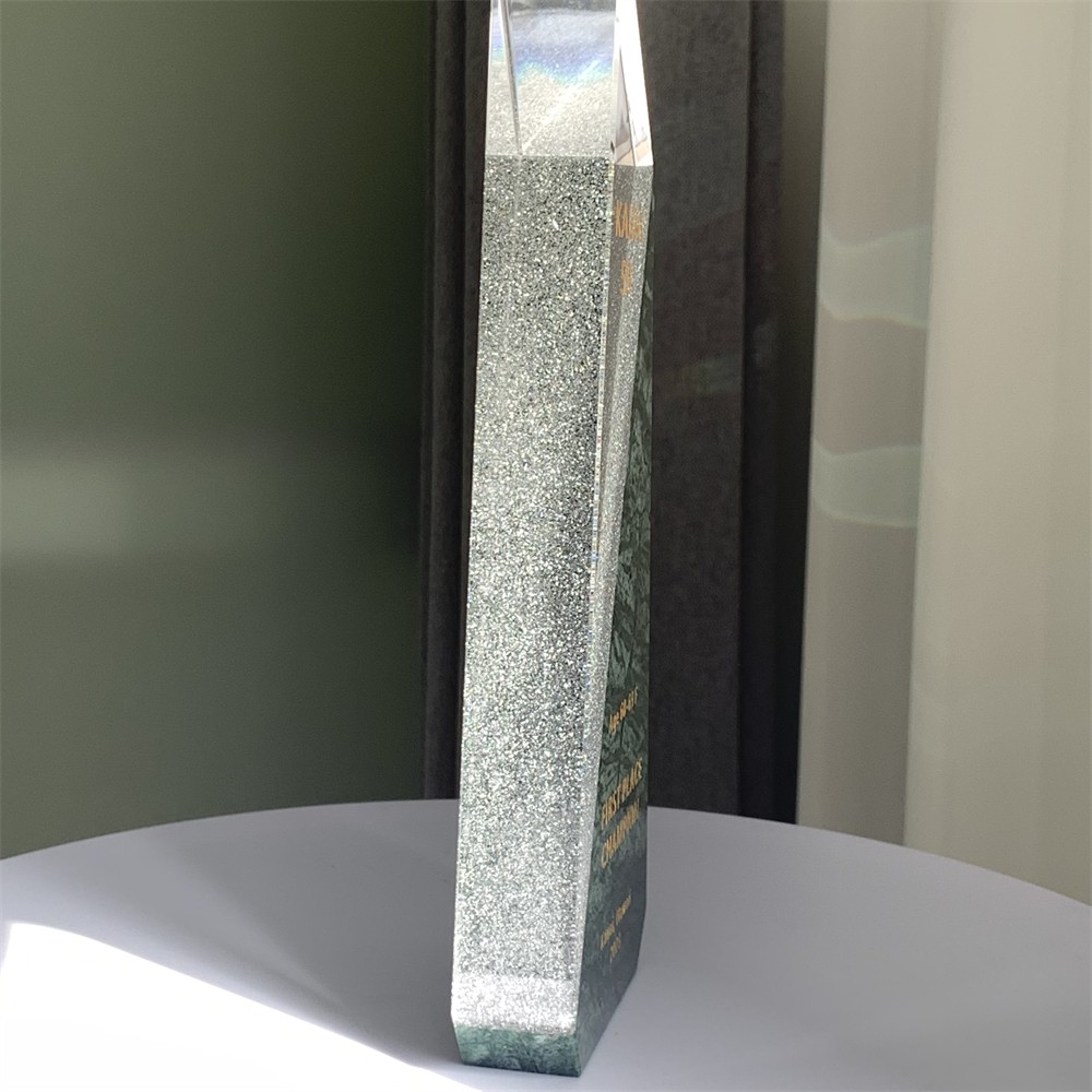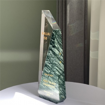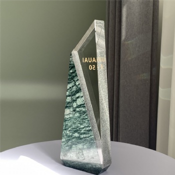 ADL Crystal Glass Trophy with Green Stone New Design Trophy with Customized Logo or Words for Events Gifts