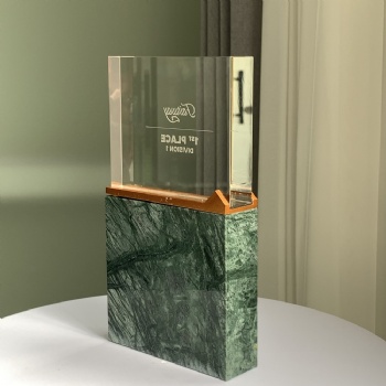 ADL 2023 New Design Crystal Glass Trophy Awards with Green Stone Base Wholesale Trophy