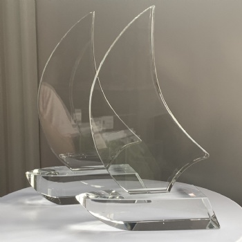 ADL Sailboat Crystal Glass Trophy Awards High-Quality Customized Design with Words and Logo for Company Gifts