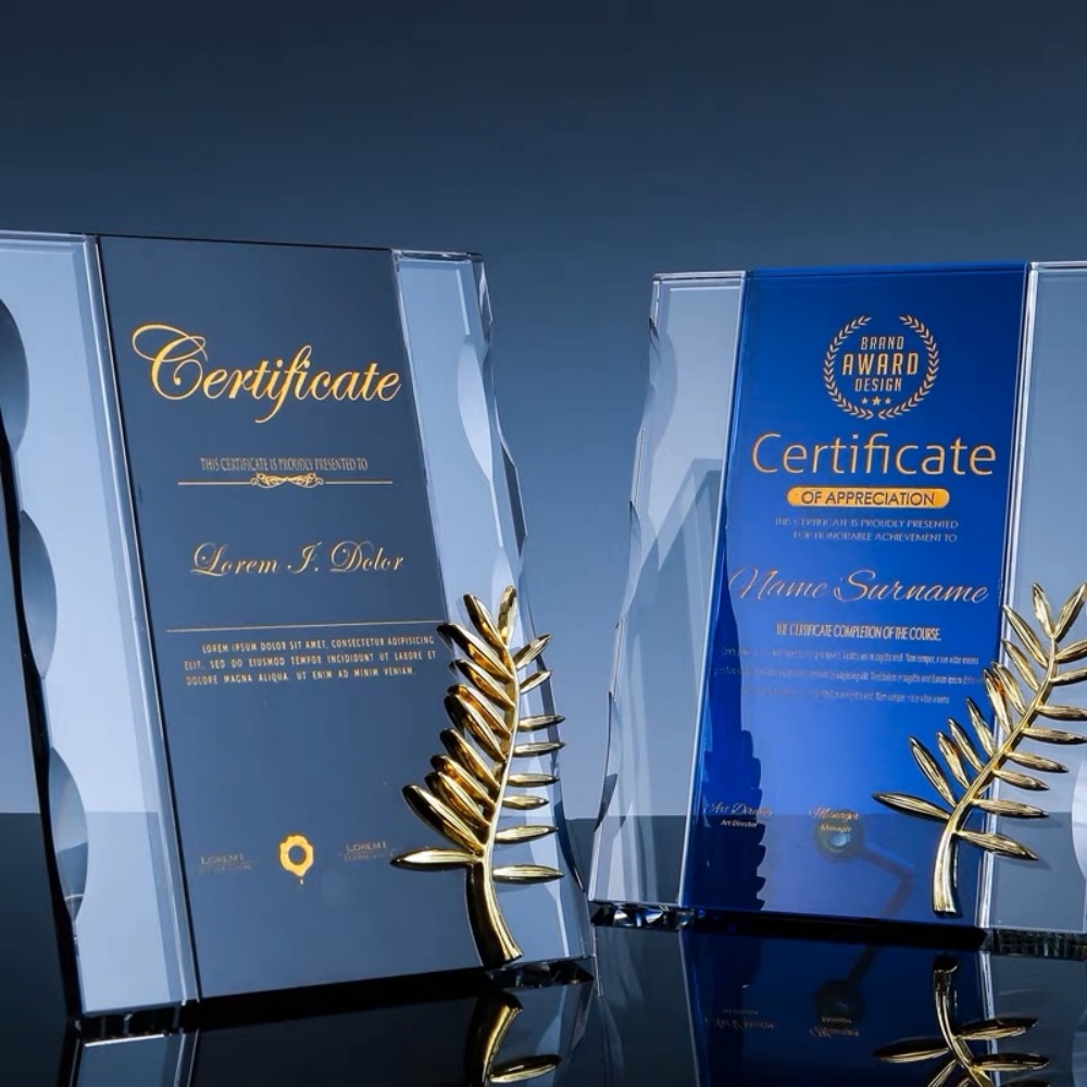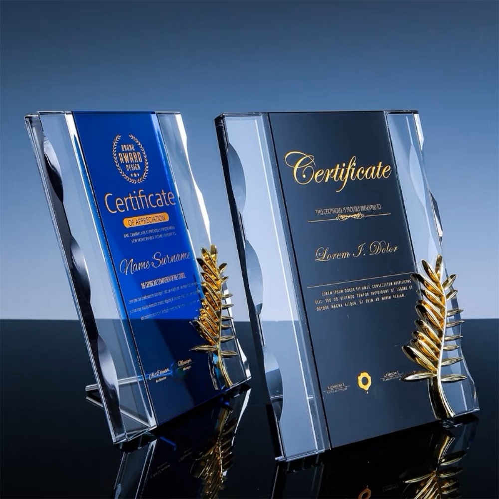 ADL Crystal Glass Medals High-Quality with Metallic Ear of Wheat for Souvenir Gifts and Awards