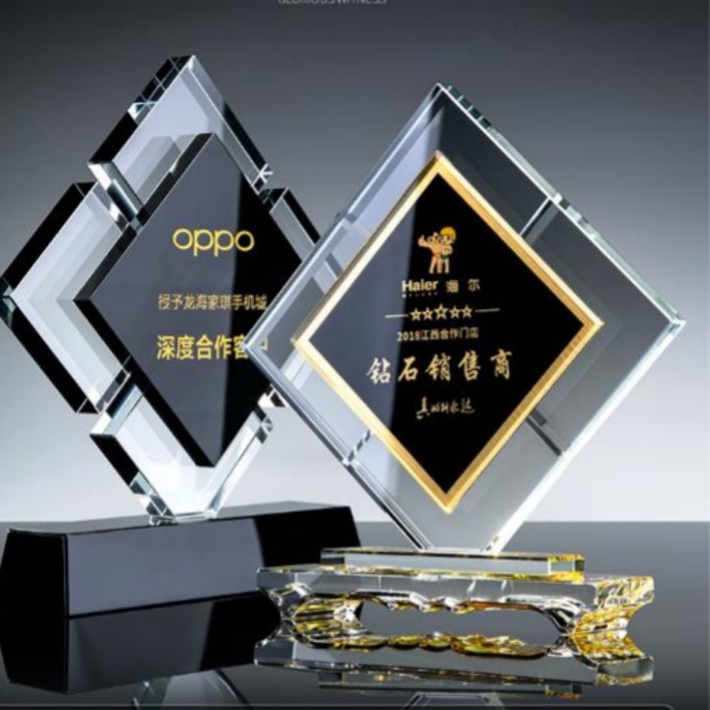 ADL Crystal Glass Square Trophy Awards with Black Base High-Quality with Customized Logo and Awards Wholesales
