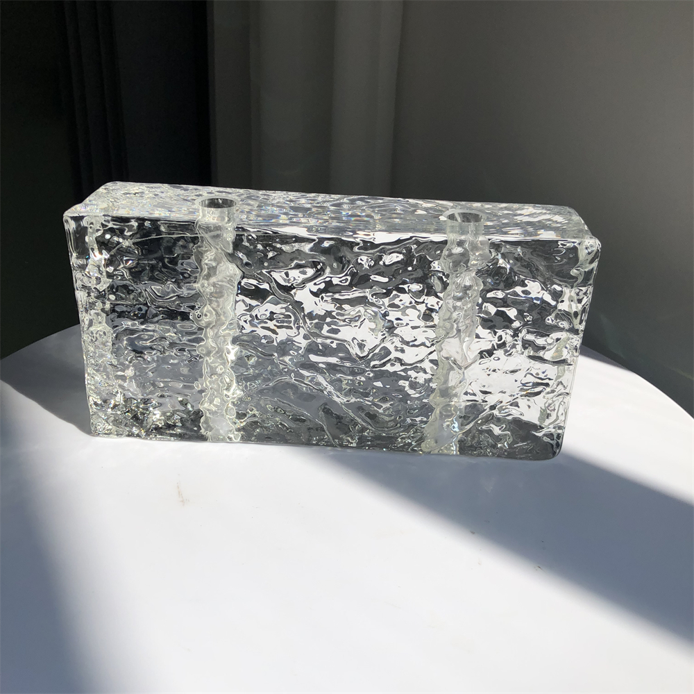 50*100*200mm New Design Stone Pattern Clear White Transparent Crystal Glass Brick Blocks with Holes for Decoration