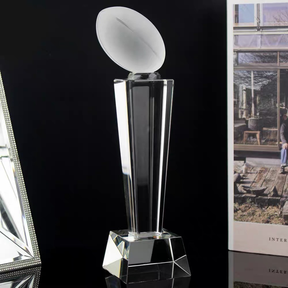 ADL Rugby American Football Crystal Glass Trophy with Customized Words and Logo for Sports Events