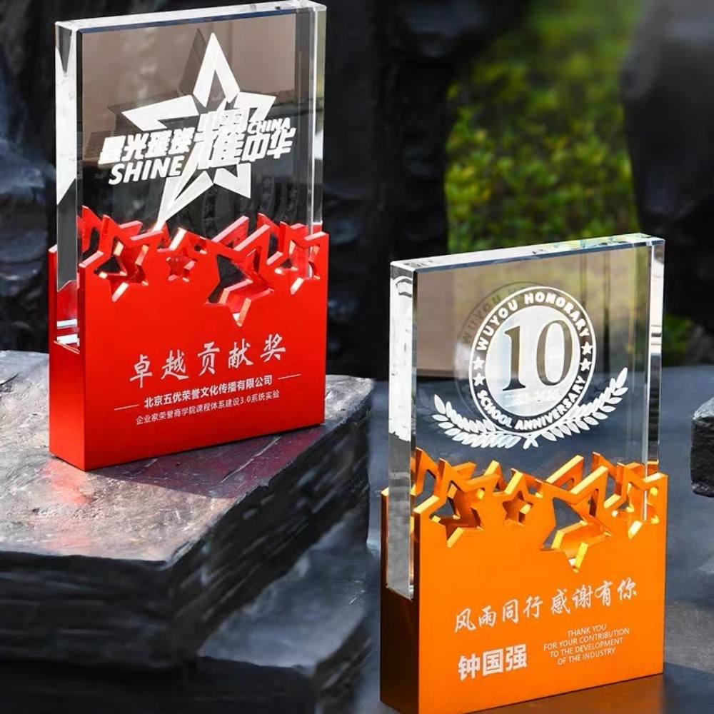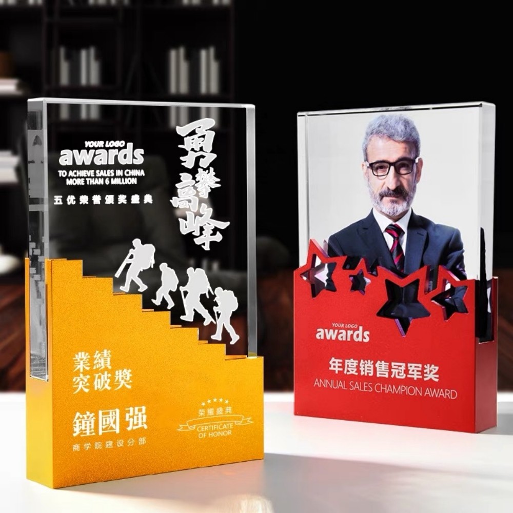 ADL 2023 Crystal Glass Trophy with Metal Honorary Outstanding Employee Trophy Awards Mountain Peak Trophy