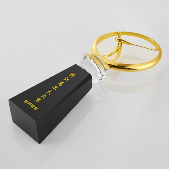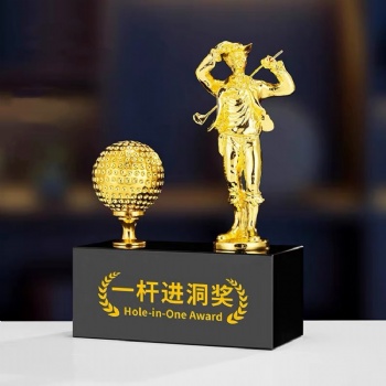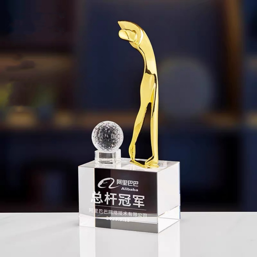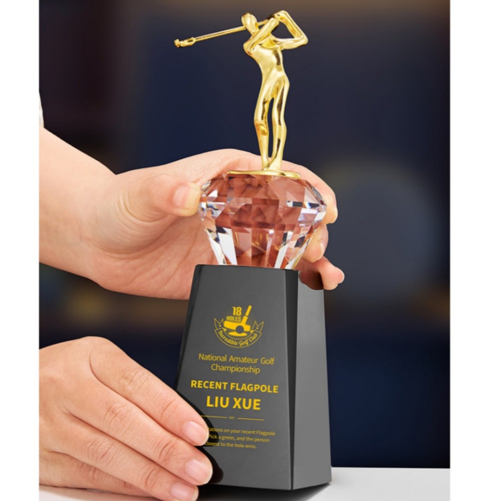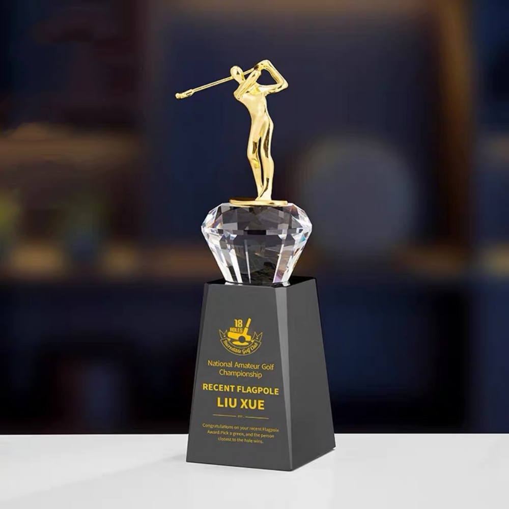 ADL Golf Crystal Glass Trophy Awards with Metal Black Crystal Glass Base for Honorary Award Customized Words Sports Awards