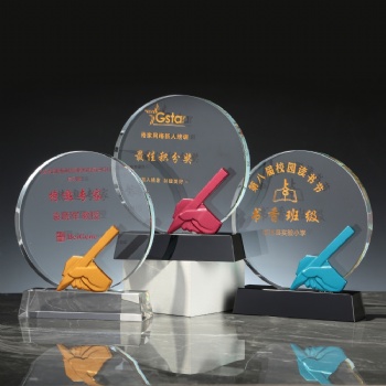 ADL 2023 New Design Round Crystal Glass Trophy Awards Star Thumb Hand Trophy Awards Three Colors Awards