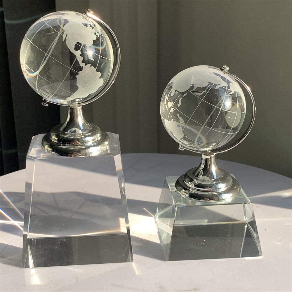 ADL Crystal Glass Globe Trophy Awards Glass Souvenir Gifts Sports Ball Crystal Crafts for Business Gifts with Plastic