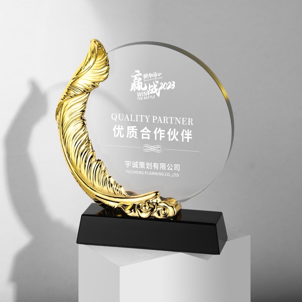 ADL Creative Crystal Glass Trophy Metal Awards with Black Crystal Glass Base Customized Words and Logo Trophy Crystal Crafts