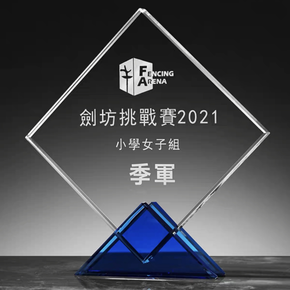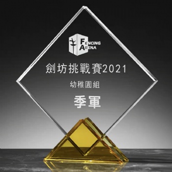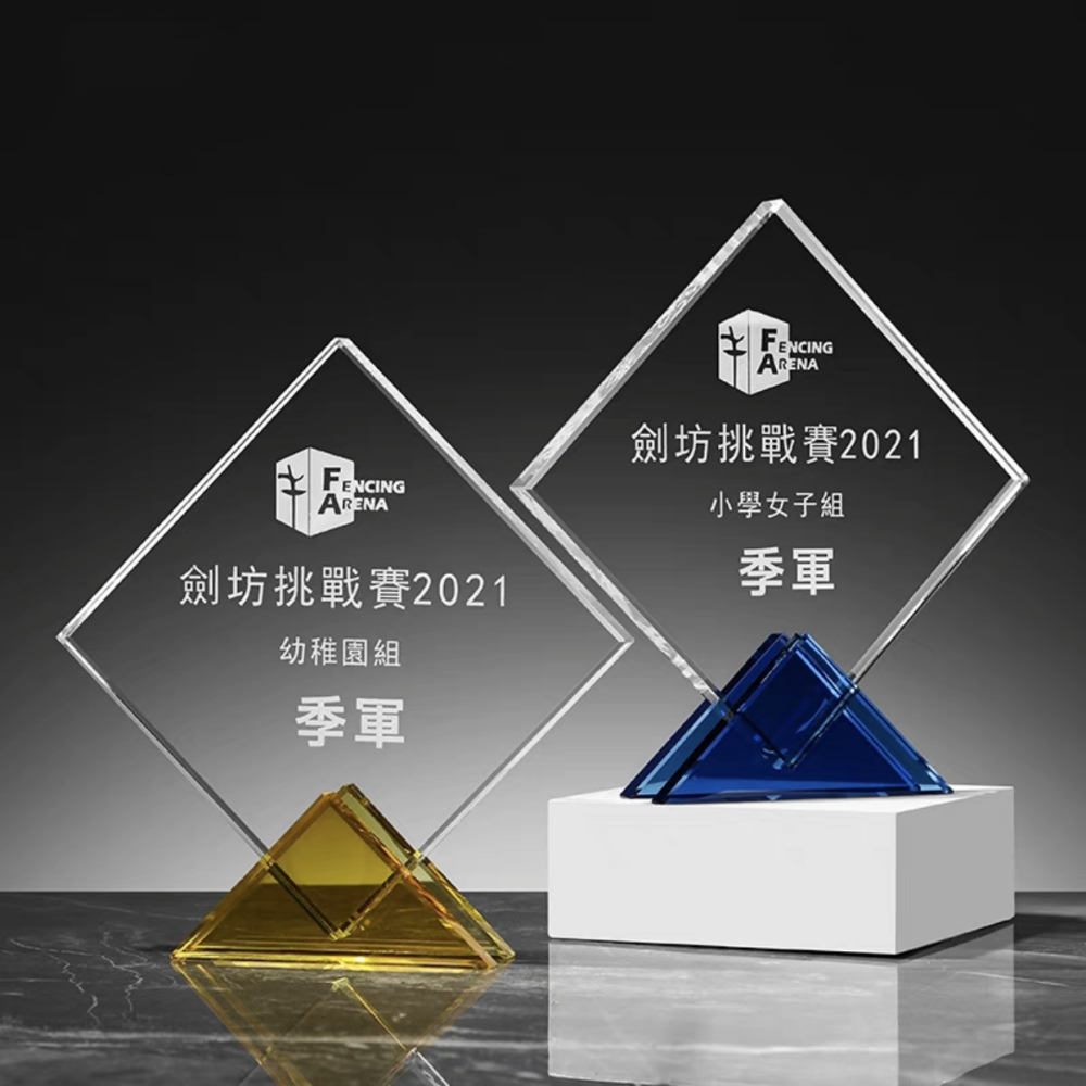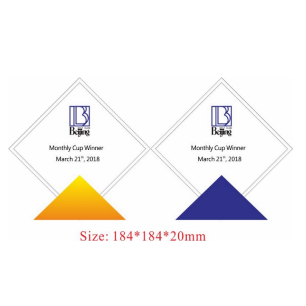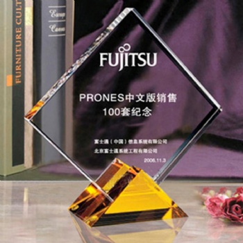 ADL Custom Wholesales Yellow and Blue Optical Crystal Awards Corporate Awards Crystal Trophy for Souvenir Gifts from China