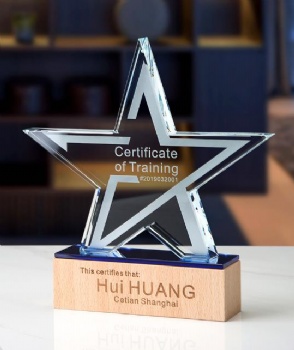 New Wooden Creative Company Annual Meeting Souvenir Blank Crystal Star Wood Trophy Plaque Manufacture Wholesale CheapTrophy