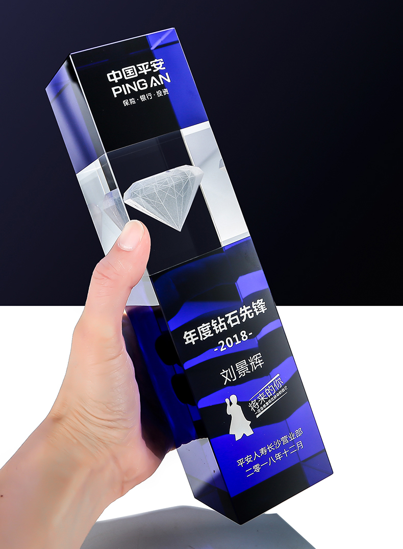 New Design Acrylic Awards Blue Laser Diamond Trophy Crystal Antique Gold Metal Crystal Award Trophy Glass Trophy Crystal