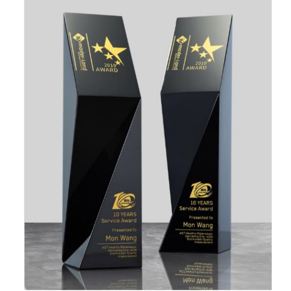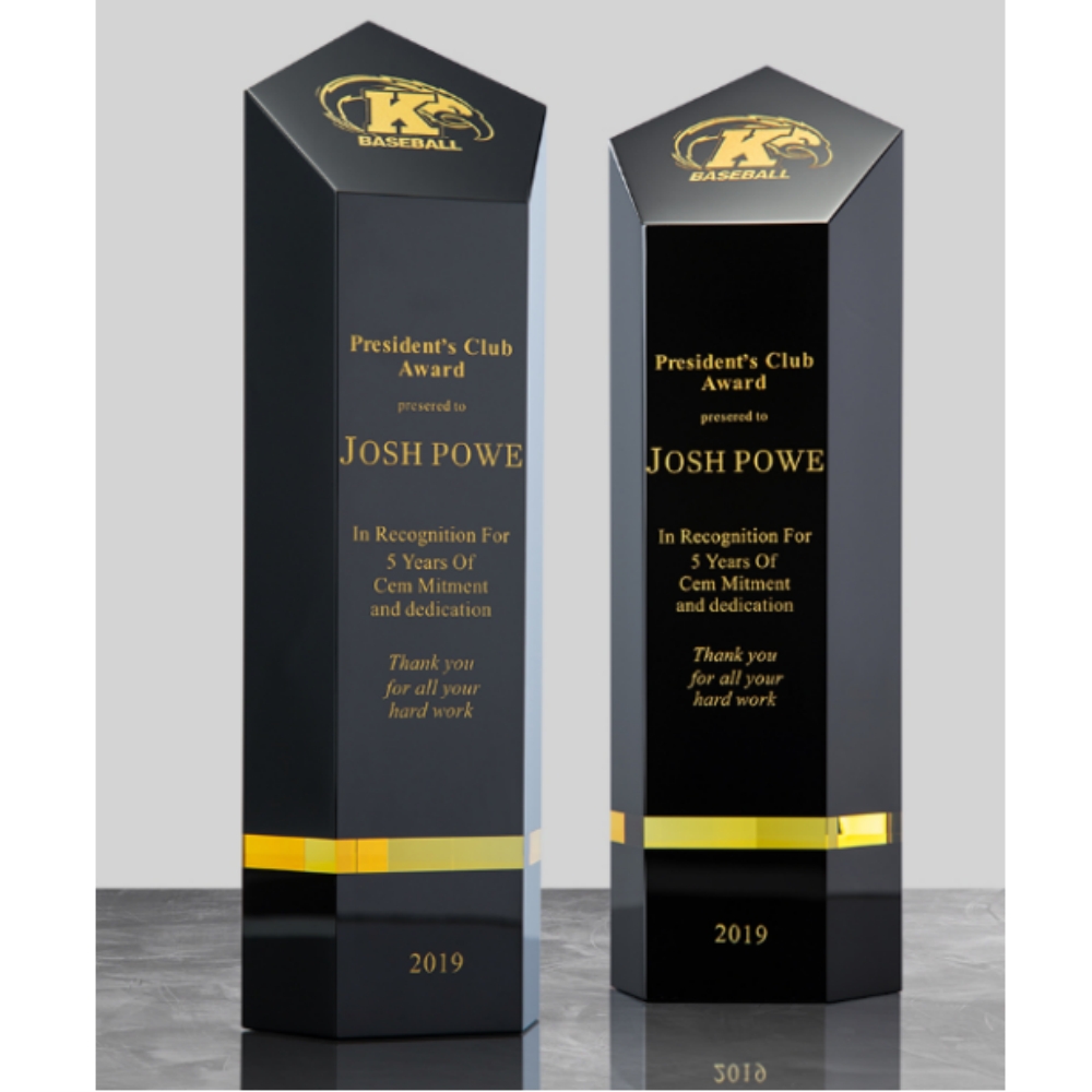 ADL Factory Wholesales High Grade All Black Crystal Glass Trophy Awards with Customized Logo and Words Business Crystal Gifts