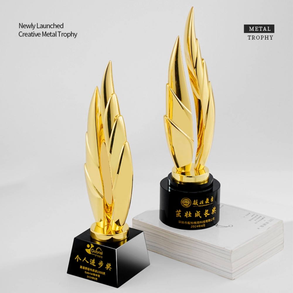 ADL Be Promoted Step by Step United Crystal Glass Metal Trophy Golden Awards Glass Crafts Business Gifts Awards for Souvenir