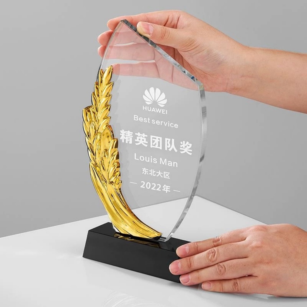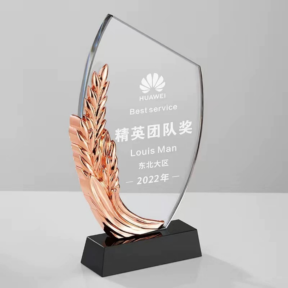 ADL Glass Awards Crystal Trophy Award with Customized Laser Printed Words and Logo Metal Plaques for Business Crafts Gifts