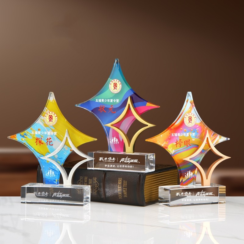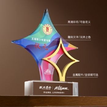ADL Customized New Design Star Metal Crystal Glass Trophy Awards with Logo Business Gifts from China Etched Crystal Crafts