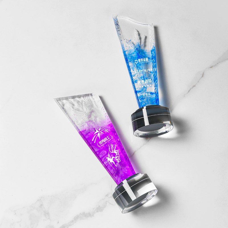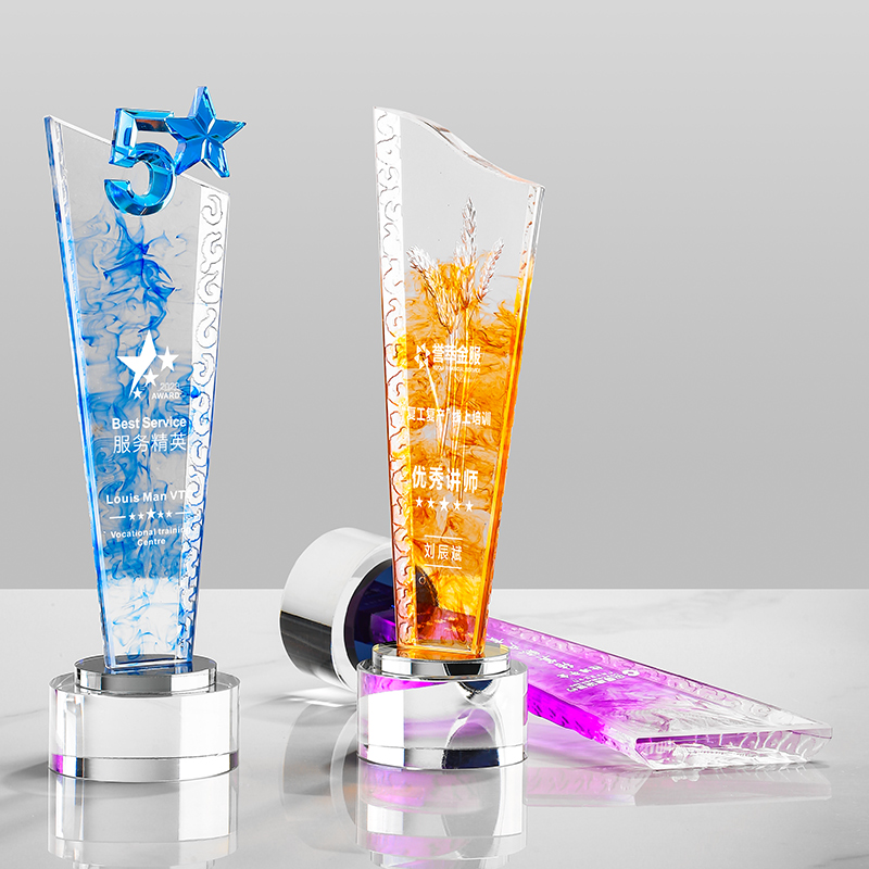 Hot-Selling Environmentally Friendly Blade Shape Crystal Glass Trophy of Gifts Awards