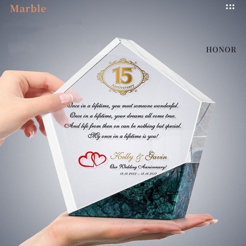 ADL High Quality Crystal Crafts Hexagon Trophies Marble Stone Plaques Award Cups-Business Gifts