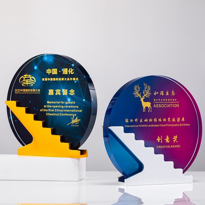 ADEL Metal Crystal Colorful Glass Trophy Crafts Awards Round Shape for Employee Honor Commendation High-Quality Glass Craft Gift