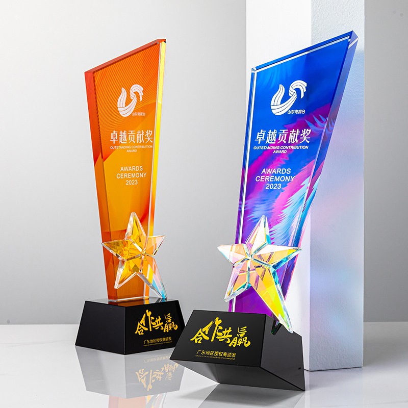 ADL Star Crystal Glass Award Trophy with Polished Engraved Logo High Quality Business Gift and Home Decor