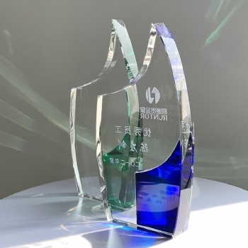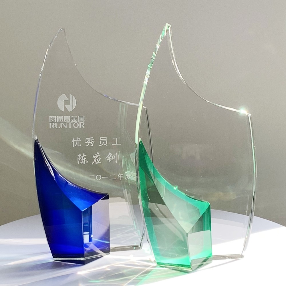 Crystal Glass Trophy with Blue or Green Color, it can with customized logo and words. With K9 Crystal Glass Material.