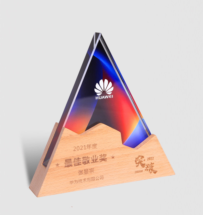 ADL New Design High-Quality Triangle Shape Crystal Glass Awards Trophies with Wood Base Custom Logo